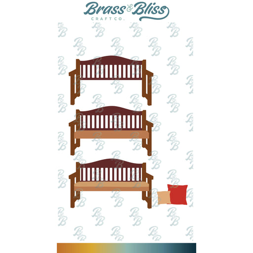 Jazz up your card making with the 5615-05D Patio Bench with Pillows Die! This 7 Part Tabbed set includes a bench measuring 3.15" x 1.82" and a pill...
