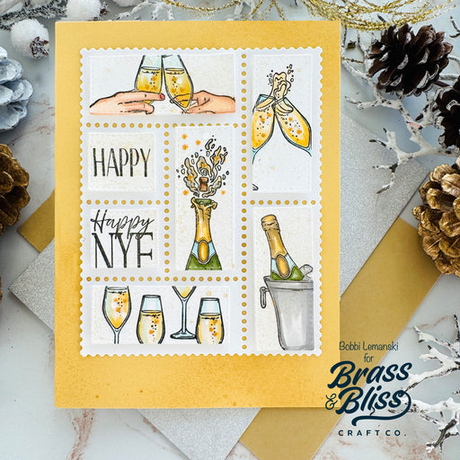 Ring in the new year with this festive 4x8 stamp set featuring 10 cheerful designs perfect for holiday cards and celebrations. Includes a charming ...